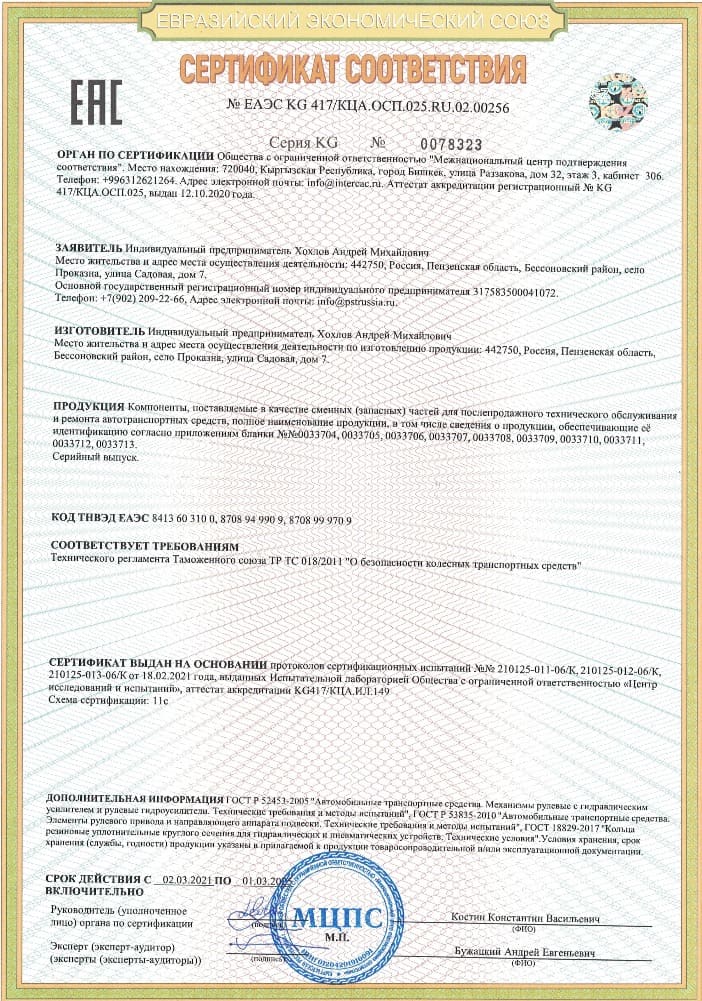 - Комплектующих для ремонта рулевого управления.